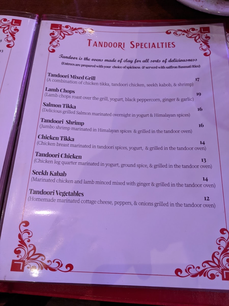 Jumbo shrimp marinated in himalayan spices and grilled in the tandoor oven.