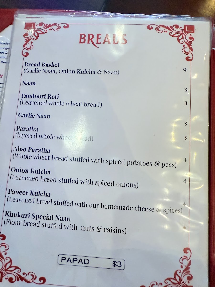 Soft, fluffy naan topped with minced garlic and fresh herbs.